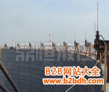 液压提升设备提升原理利用液压提升装置均布于储罐内壁圆周处,先提升罐顶及罐体的上层壁板,然后逐层组焊罐体的壁板。采用自锁式液压千斤顶和提升架、提升杆组成的液压提升机,当液压千斤顶进油时,通过其上卡头卡紧并举起提升杆和胀圈,从而带动罐体向上提升;当千斤顶回油时,其上卡头随活塞杆回程,此时其下卡头自动卡紧提升杆不会下滑,千斤顶如此反复运动使提升杆带着罐体不断上升,直到预定的高度。当下一层壁板对接组焊后,打开液压千斤顶的上、下松卡装置,松开上下卡头将提升杆以及胀圈下降到下一层壁板下部胀紧、焊好传力筋板,再进行提升。如此反复,使已组焊好的罐体上升,直到 后一层壁板组焊完成,从而将整个储罐安装完哔。