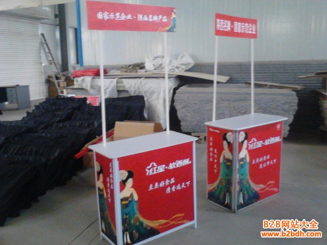 材 质 :铁管烤漆框台面板和中间隔板为防火板,携带方便,安装简单。适用于各种展销会、大型卖场、商场、超市、房地产门市、产品促销等活动,结构牢固,成本低