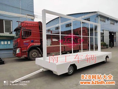 2.2吨固定式LED广告屏拖车南工车辆非标订制,无动力,需叉车或牵引车牵引,成本低,价格优,外观美等特点。